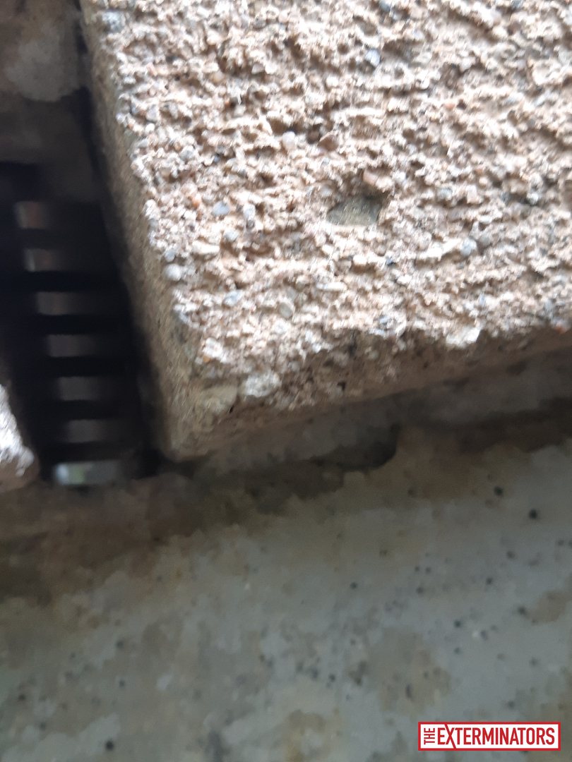 Mice commonly exploit small structural openings at ground level, including weep vents and utility penetrations. The combination of foundation exposure and unprotected vents increases the likelihood of rodents accessing wall voids and interior spaces, particularly during cooler months.
